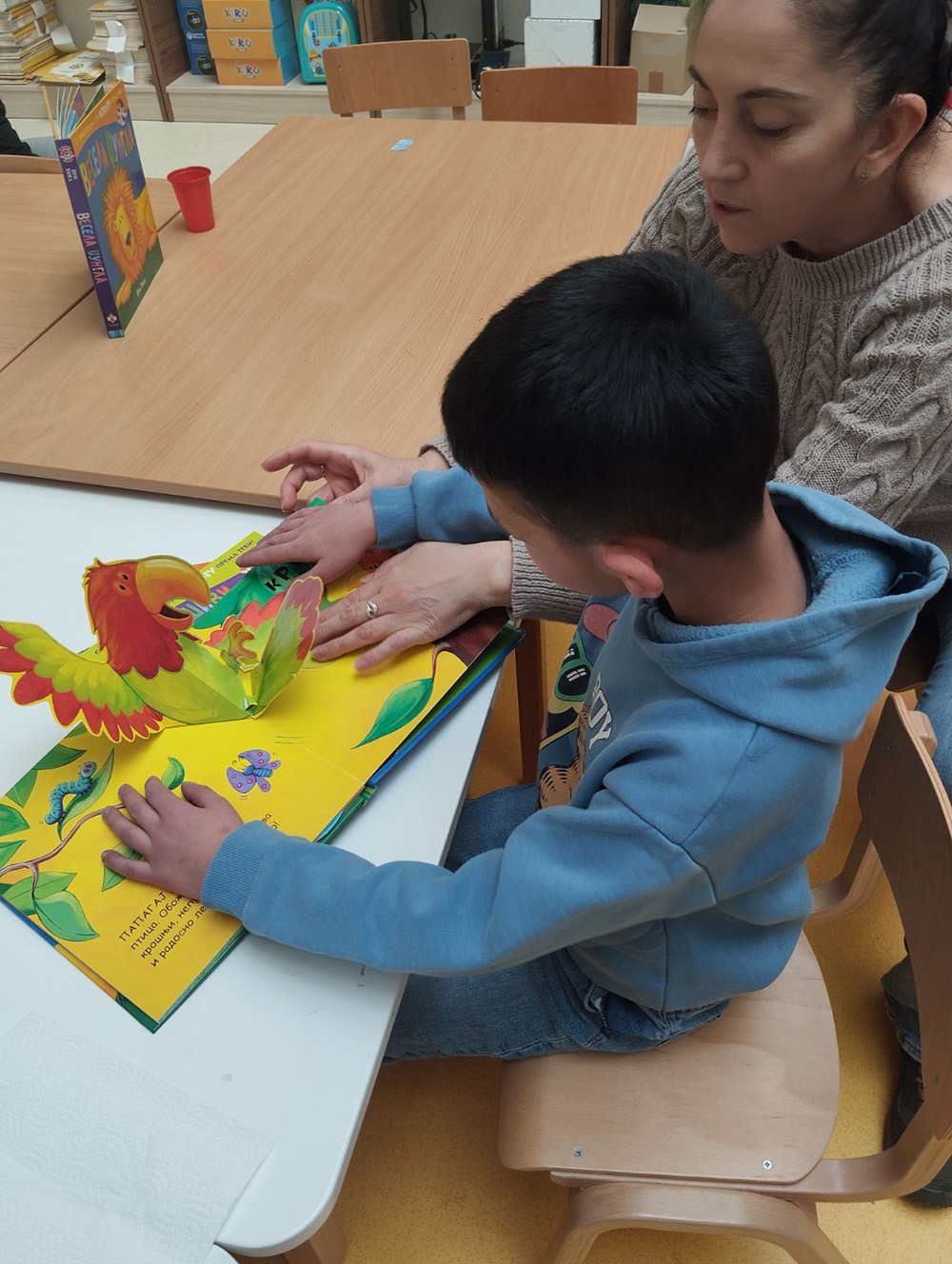 Posjeta vrtiću ,,Crvenkapa'' bila je ispunjena toplinom, radošću i međugeneracijskim druženjem koje će se dugo pamtiti. Korisnici Dnevnog centra ,,Tisa'' imali su priliku da provedu dan u okruženju dječije igre, mašte i učenja, što je za sve učesnike predstavljalo posebno i dragocjeno iskustvo. Po dolasku u vrtić, korisnici Dnevnog centra ,,TISA'' su srdačno dočekani i od strane mališana i od strane vaspitača. Prva aktivnost bila je obilazak biblioteke za djecu, koja je pažljivo uređena i bogata raznovrsnim slikovnicama, bajkama i edukativnim knjigama prilagođenim najmlađima. U prijatnoj i opuštenoj atmosferi, korisnici su zajedno sa djecom listali knjige, razgovarali o omiljenim pričama i dijelili utiske. Poseban trenutak bio je zajedničko čitanje, gdje su se kroz riječi i ilustracije stvarale veze između generacija.