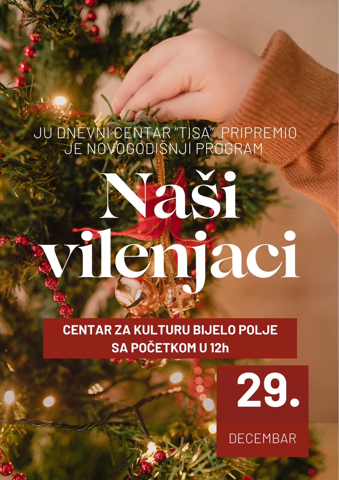 Novogodišnja priredba „Naši vilenjaci“, u izvođenju korisnika Dnevnog centra „Tisa“, održaće se u četvrtak, 29. decembra, u bjelopoljskom Centru za kulturu, sa početkom u 12 časova.