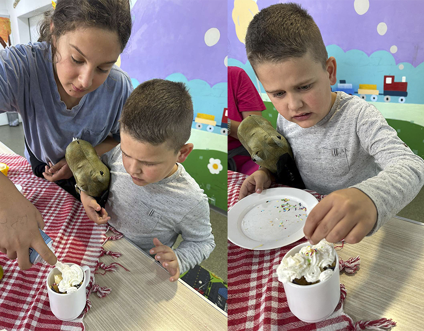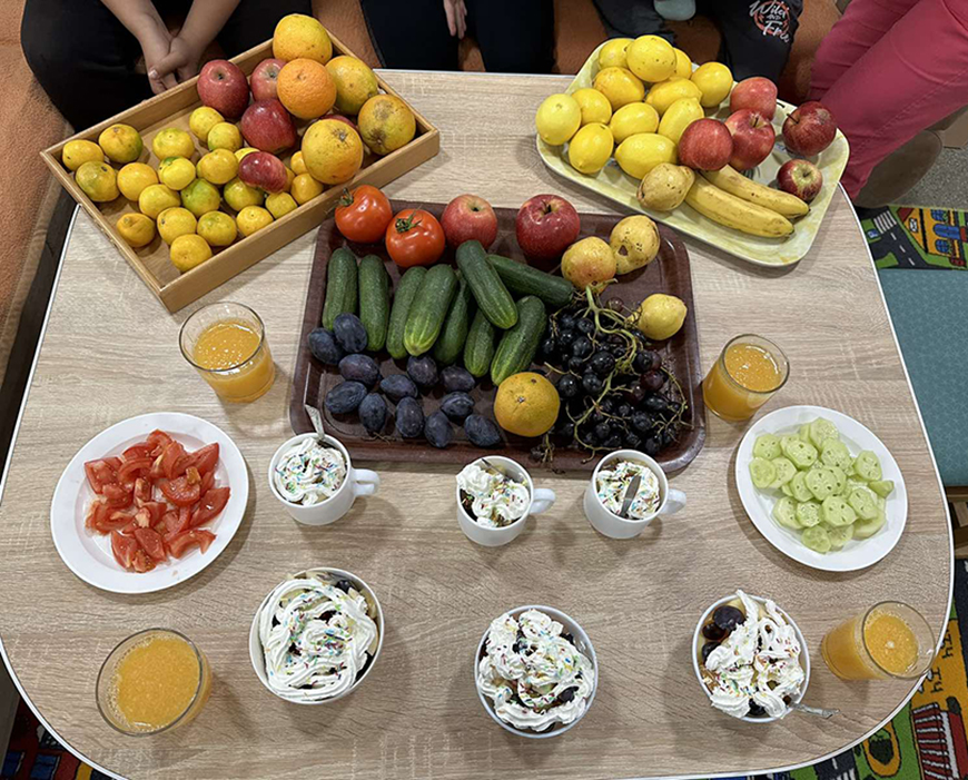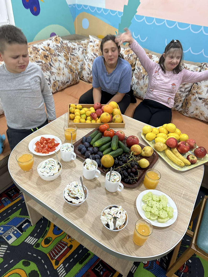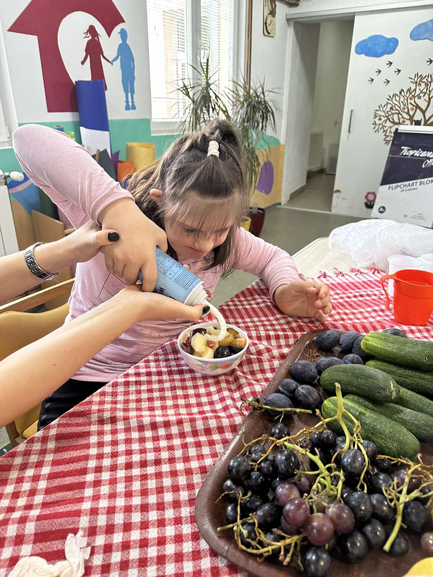 Naši drugari znaju koliko je značajno voditi računa o zdravlju i koliko je bitna zdrava ishrana, svakodnevni unos voća i povrća u organizam. Oni su povodom Svjetskog dana hrane posjetili zelenu pijacu. Uživali su dok su trgovali razne vrste voća. Posle uspješne trgovine su tokom radionice pomagali i sjeckali različito voće i pravili voćnu salatu. Cijedili su od voća razne sokove koje su potom degustirali.