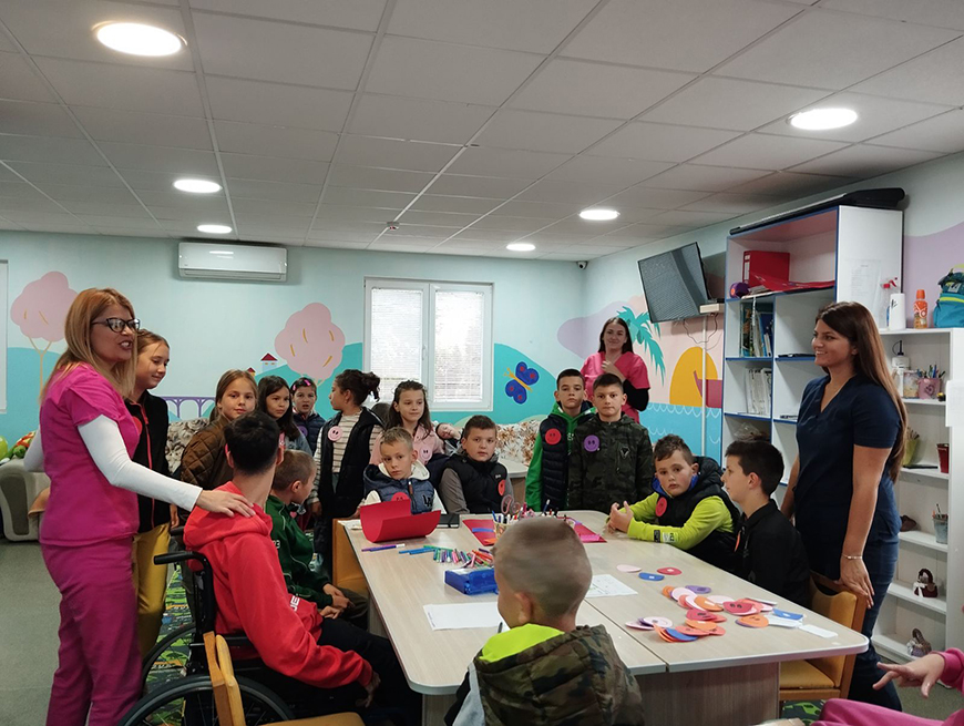 Povodom predstojećeg Dana ljubaznosti učenici tri odjeljenja četvrtog razreda osnovne škole " Risto Ratković" sa svojim učiteljicama su posjetili djecu iz našeg Centra. Oni su uživali družeći se sa našom djecom, oduševljeni su prostorijama gdje djeca borave. Posjetili su slanu sobu, senzornu sobu, montesori kabinet, kabinet za asistivnu tehnologiju, kabinet za neurofidbek terapiju, salu za fizioterapiju, hidromasažni bazen.