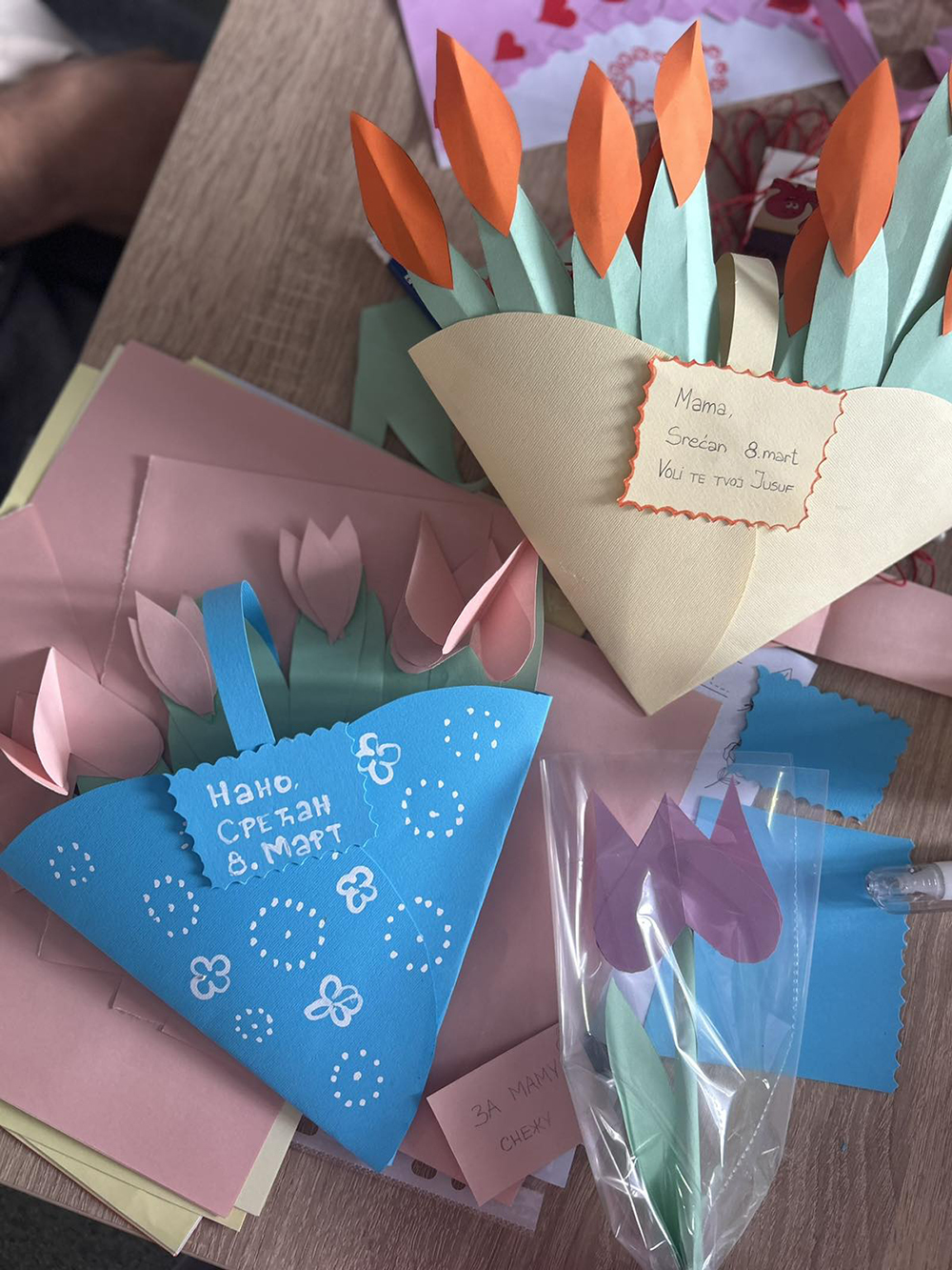 Povodom ovog značajnog datuma u našem Centru je održano niz radionica u kojima su djeca radi učestovala. Uživali su dok su pripremali ruže i cvijeće za svoje mame koje su pravili od krep papira, ukrasavali svoje čestitke. Napravili su bukete gdje su izrazili svoju kreativnost. Učestvovali su u likovnom dijelu radionice gdje su iscrtavali crtež na zidu sa motivima 8. marta