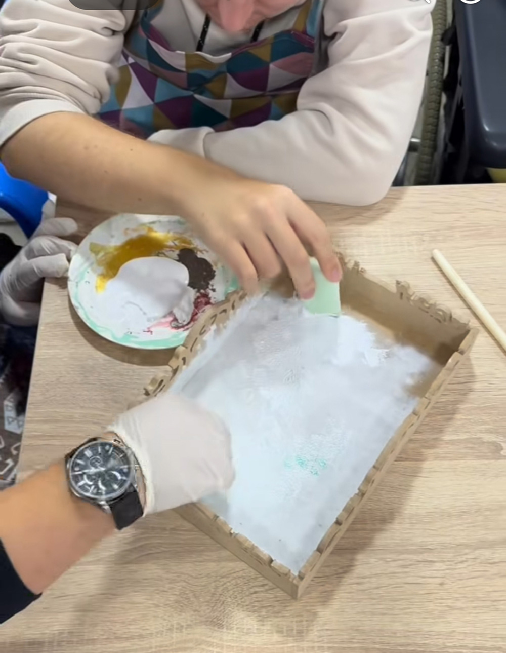 Danas smo u Dnevnom centru radili tehniku dekupaža. Svi zajedno smo učestvovali u ovom kreativnom radu, a djeca su sa velikim uzbuđenjem i radošću učestvovala u procesu. Radili smo dvije tehnike - dekupaž u stilu kože i dekupaž u stilu kamena. Današnju radionicu su ispunili osmijesi, radost i dječija mašta.