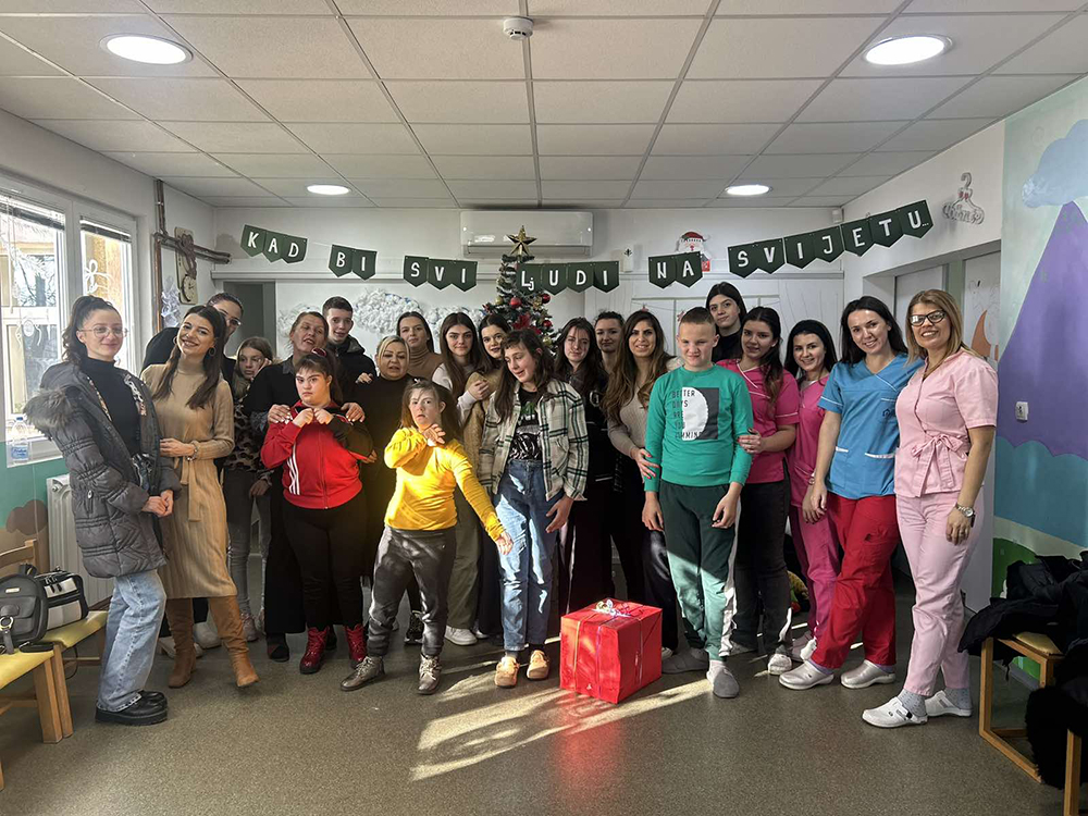 Učenici trećeg razreda Srednje stručne škole turističkog smjera su posjetili naše korisnike, kao i asistenti u nastavi. Oni su djecu iznenadili prigodnim poklonima - slatkišima koje oni vole. Učenici su za su djecu napravili bakine kolače kako bi im uljepšali ove predstojeće novogodišnje praznike. Za njih su napisali poruke kako bi im pojedinačno čestitali Novu godinu. U dobrom raspoloženju djeca su se družila i uživala u igri i pjesmi.